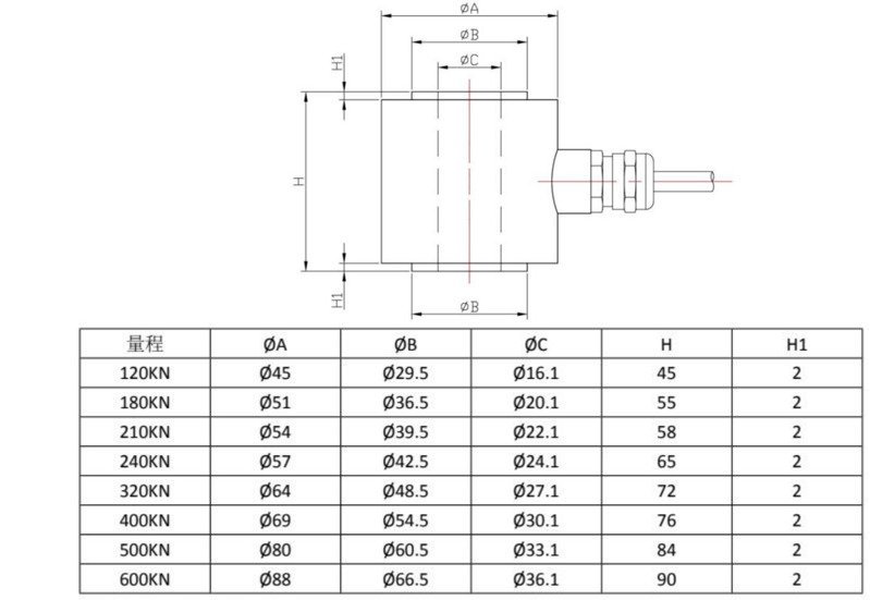 | 量程 | 120KN~600KN | 輸出電阻 | 700±5Ω |